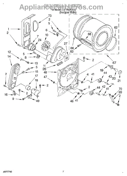 This is a drum assembly intended for use with dryers. This part can be found inside the dryer and is responsible for holding clothing while a cycle is running. It holds wet laundry while loading the appliance. Over time and with use, the drum assembly can start to wear out. This can cause the dryer to squeal, start and stop during a cycle, make buzzing noises, or seize up.If the drum assembly is damaged, it will need to be replaced. Make sure to have basic tools and a pair of work gloves ready. The dryer should be turned off and unplugged from the wall. Raise the top panel, remove the front panel, and then remove the drum. The drum support roller should be taken out and installed on the new drum. Reinstall with the new component and reassemble all parts before use.The drum assembly is made to be used with dryers and washer/dryer combos from Inglis, Estate, Admiral, Crosley, Roper, Magic Chef, Amana, KitchenAid, Maytag, Kenmore, and Whirlpool. It is a genuine OEM replacement part that is sourced directly from the manufacturer. The part is sold on an individual basis.