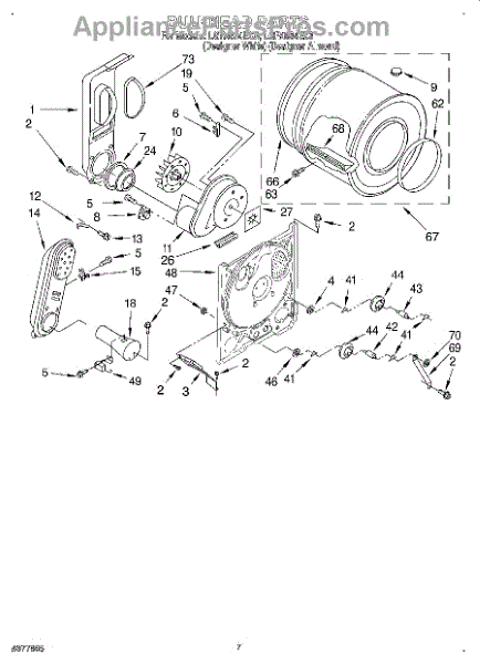 This is a drum assembly intended for use with dryers. This part can be found inside the dryer and is responsible for holding clothing while a cycle is running. It holds wet laundry while loading the appliance. Over time and with use, the drum assembly can start to wear out. This can cause the dryer to squeal, start and stop during a cycle, make buzzing noises, or seize up.If the drum assembly is damaged, it will need to be replaced. Make sure to have basic tools and a pair of work gloves ready. The dryer should be turned off and unplugged from the wall. Raise the top panel, remove the front panel, and then remove the drum. The drum support roller should be taken out and installed on the new drum. Reinstall with the new component and reassemble all parts before use.The drum assembly is made to be used with dryers and washer/dryer combos from Inglis, Estate, Admiral, Crosley, Roper, Magic Chef, Amana, KitchenAid, Maytag, Kenmore, and Whirlpool. It is a genuine OEM replacement part that is sourced directly from the manufacturer. The part is sold on an individual basis.