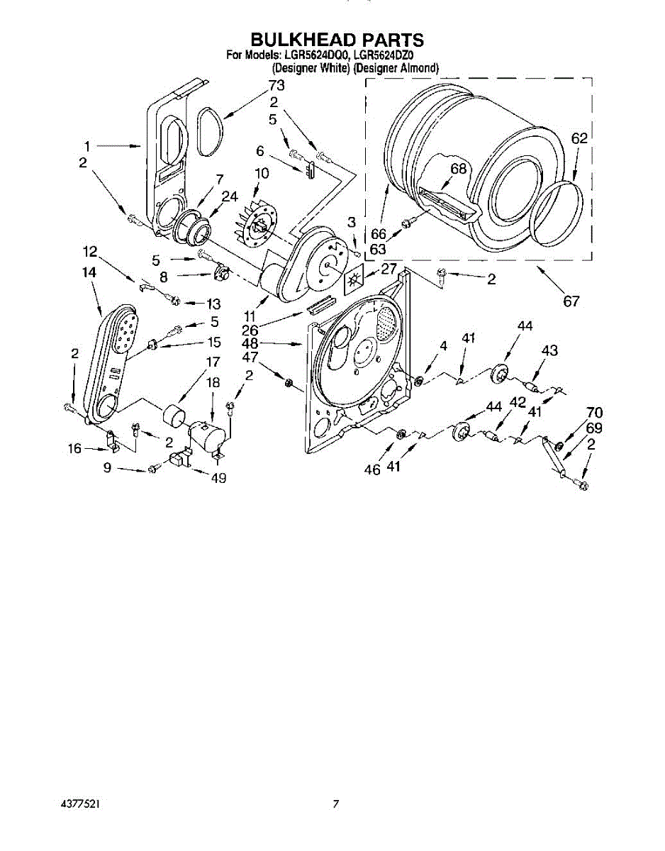 Replacement drum front bulkhead for dryers. Installs at the front of the drum assembly. Needed when original is cracked, damaged, or worn out.