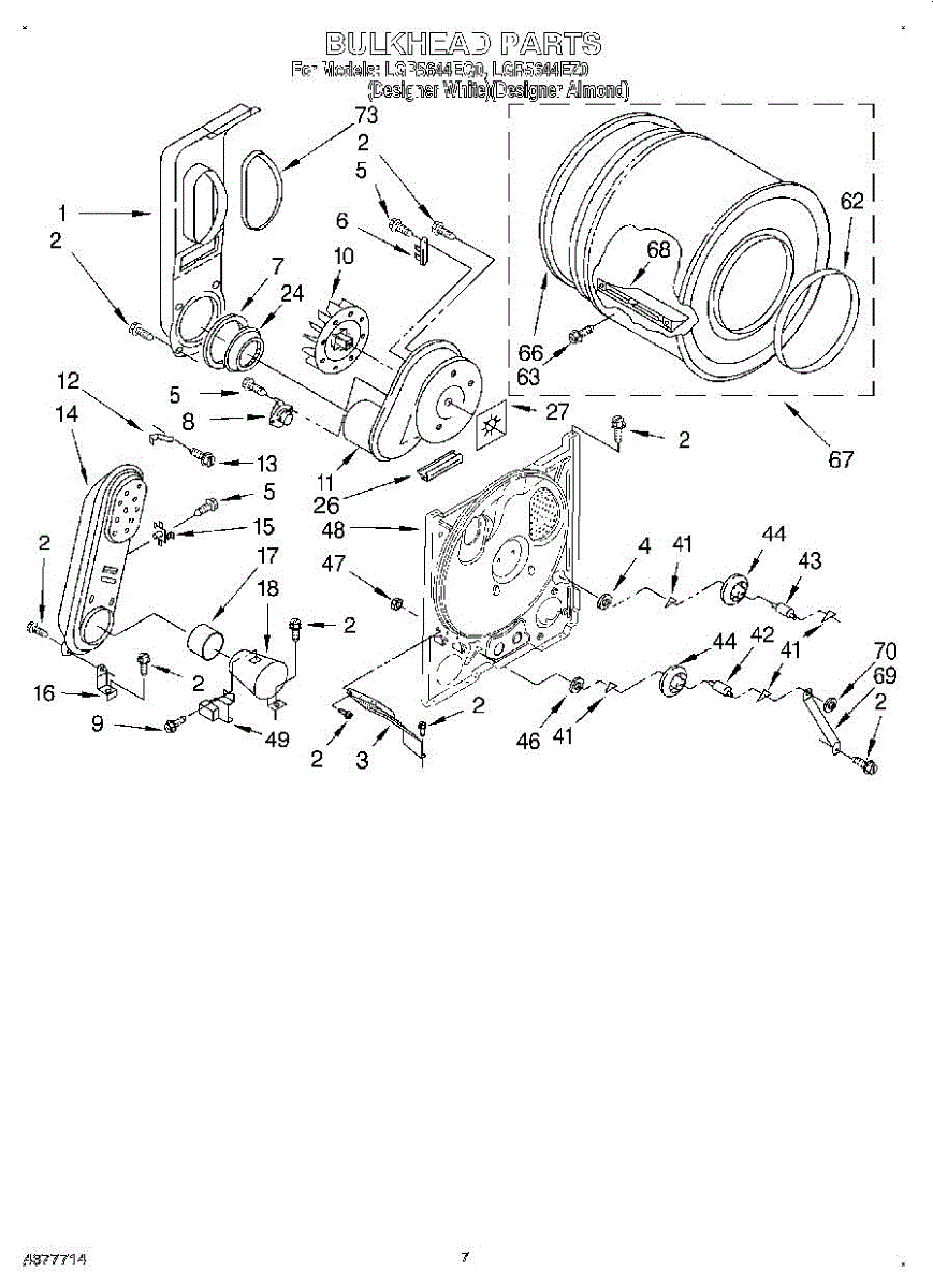 Complete drum assembly for dryers. Houses and rotates laundry during cycles. Replace if cracked, warped, damaged, or worn from extended use.