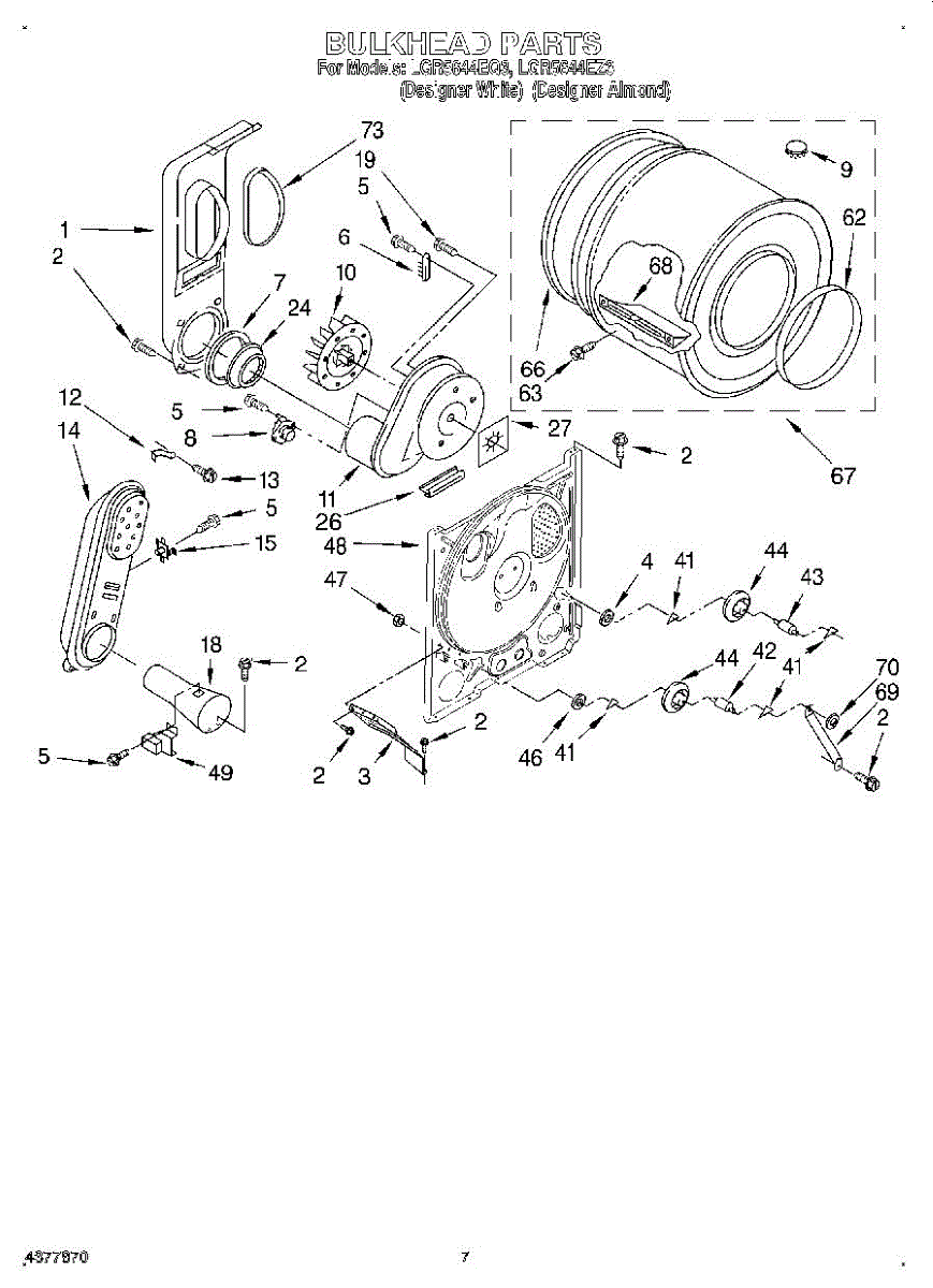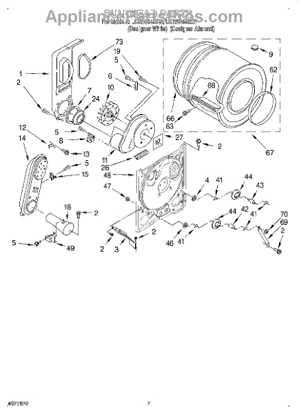 Complete drum assembly for dryers. Houses and rotates laundry during cycles. Replace if cracked, warped, damaged, or worn from extended use.