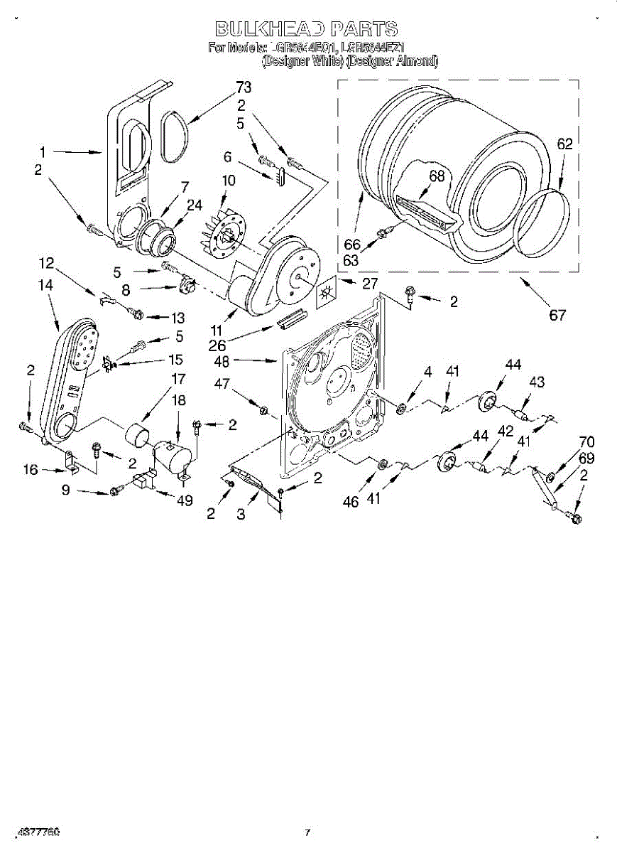 Complete drum assembly for dryers. Houses and rotates laundry during cycles. Replace if cracked, warped, damaged, or worn from extended use.