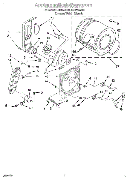 Complete drum assembly for dryers. Houses and rotates laundry during cycles. Replace if cracked, warped, damaged, or worn from extended use.