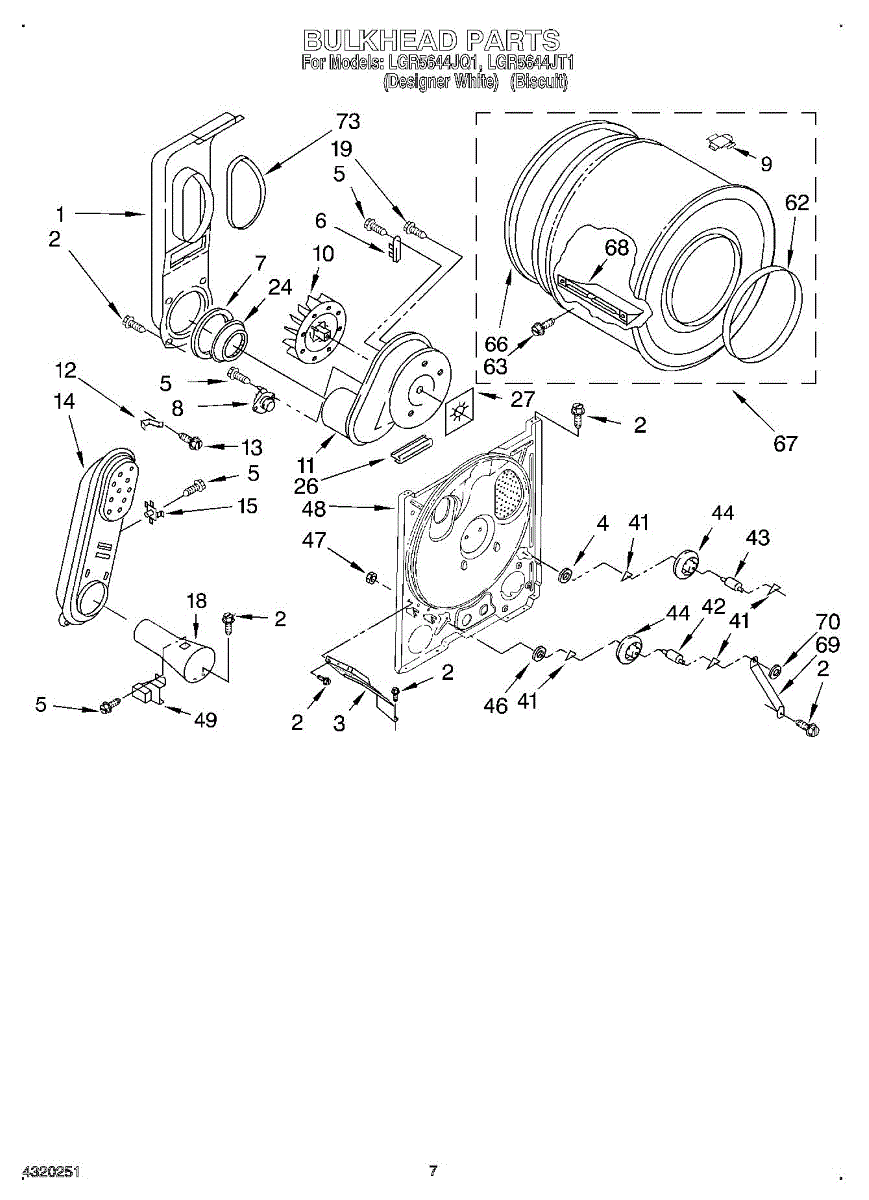 Parts for Whirlpool LGR5644JT1: 04 - Bulkhead Parts