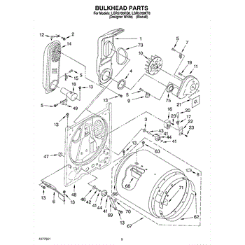 This bulkhead is the structural panel that supports and seals the washer tub and provides mounting points for related components. It restores proper alignment and containment so the washer can hold and drain water correctly. What it does: