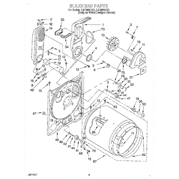 This blower housing assembly directs airflow from the dryer's drum to the exhaust, helping the appliance vent properly for efficient drying. It replaces a damaged or cracked housing to restore correct air path and reduce airflow loss. What it does: