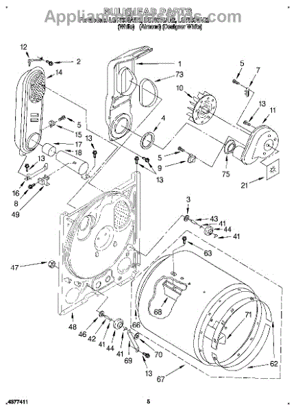 This bulkhead is the front tub housing that supports the washer drum and seals the washer cabinet to help contain water. Replaces a cracked or corroded housing to restore proper drum alignment and help prevent leaks. What it does: