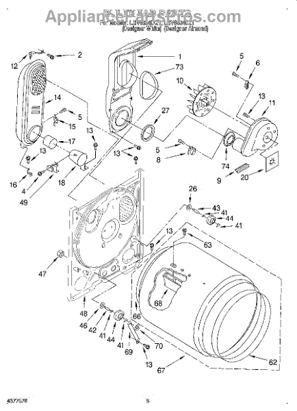 This is a drum assembly intended for use with dryers. This part can be found inside the dryer and is responsible for holding clothing while a cycle is running. It holds wet laundry while loading the appliance. Over time and with use, the drum assembly can start to wear out. This can cause the dryer to squeal, start and stop during a cycle, make buzzing noises, or seize up.If the drum assembly is damaged, it will need to be replaced. Make sure to have basic tools and a pair of work gloves ready. The dryer should be turned off and unplugged from the wall. Raise the top panel, remove the front panel, and then remove the drum. The drum support roller should be taken out and installed on the new drum. Reinstall with the new component and reassemble all parts before use.The drum assembly is made to be used with dryers and washer/dryer combos from Inglis, Estate, Admiral, Crosley, Roper, Magic Chef, Amana, KitchenAid, Maytag, Kenmore, and Whirlpool. It is a genuine OEM replacement part that is sourced directly from the manufacturer. The part is sold on an individual basis.