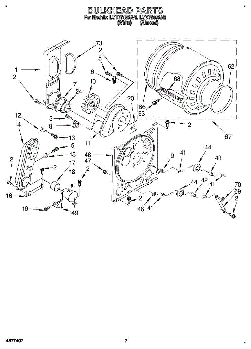 Parts for Whirlpool LGV7646AN2: 04 - Bulkhead Parts