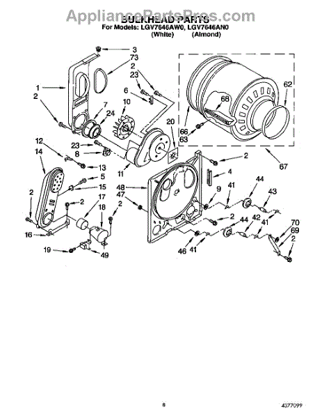 Parts for Whirlpool LGV7646AW0: 04 - Bulkhead Parts