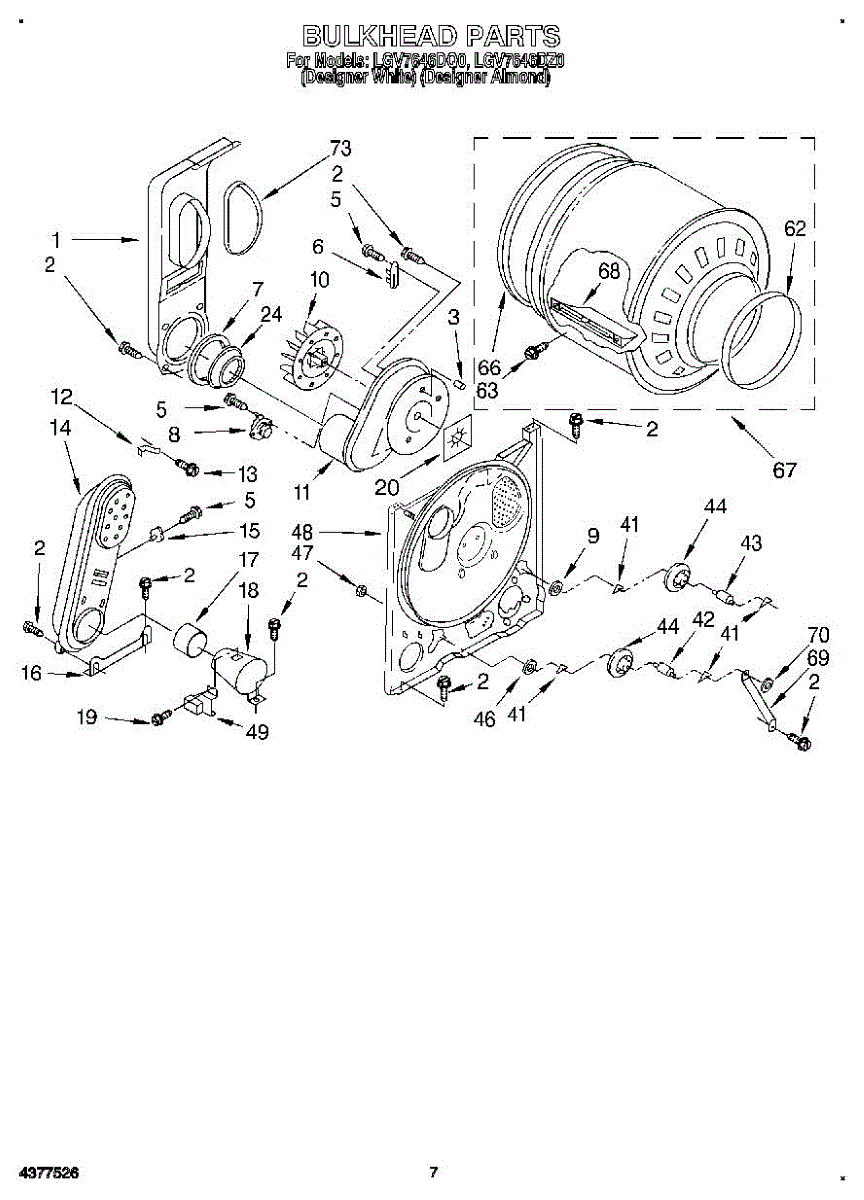 Rear drum support roller kit for dryers. Mounts behind the drum to maintain alignment and smooth rotation. Replace when rollers are worn or damaged.
