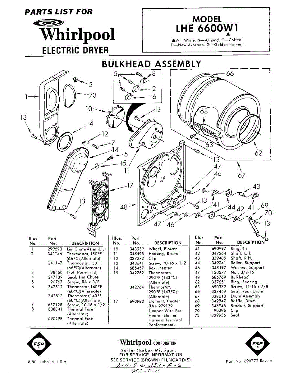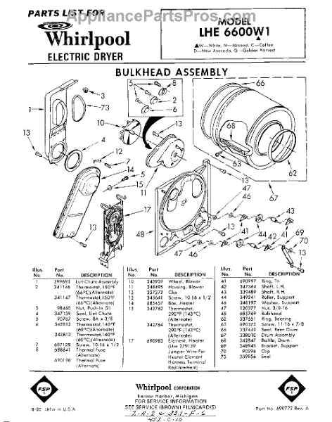 Parts for Whirlpool LHE6600W1: 01 - Bulkhead Parts