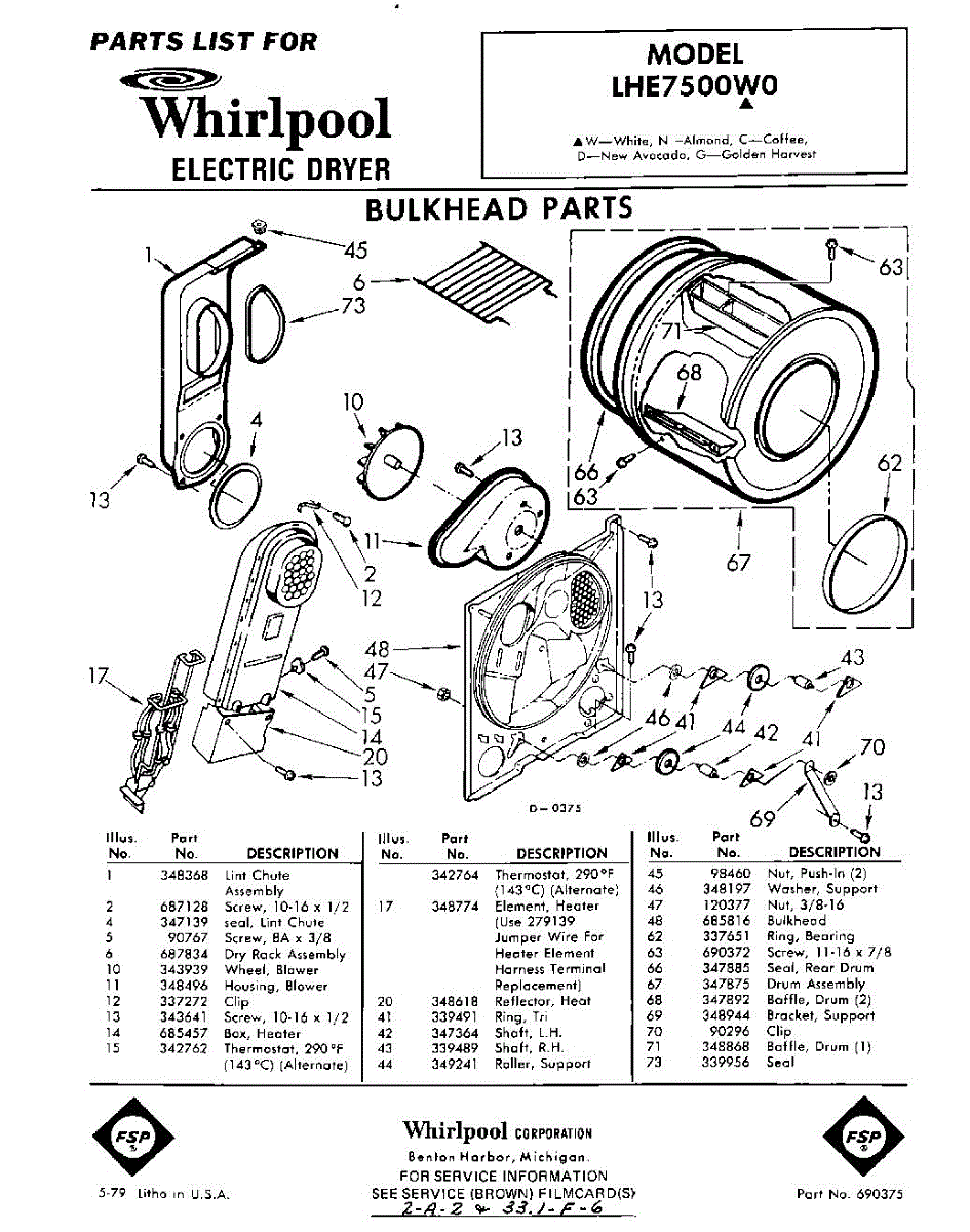 Parts for Whirlpool LHE7500W0: 01 - Bulkhead Parts