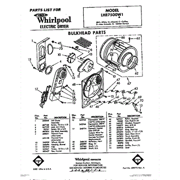 Parts for Whirlpool LHE7500W1: 01 - Bulkhead Parts