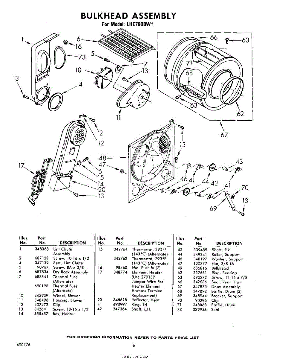 Parts for Whirlpool LHE7800W1: 06 - Bulkhead Parts