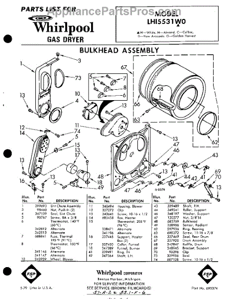 Parts for Whirlpool LHI5531W0: 01 - Bulkhead Parts