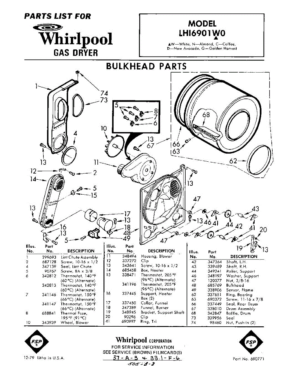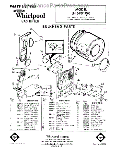 Parts for Whirlpool LHI6901W0: 01 - Bulkhead Parts