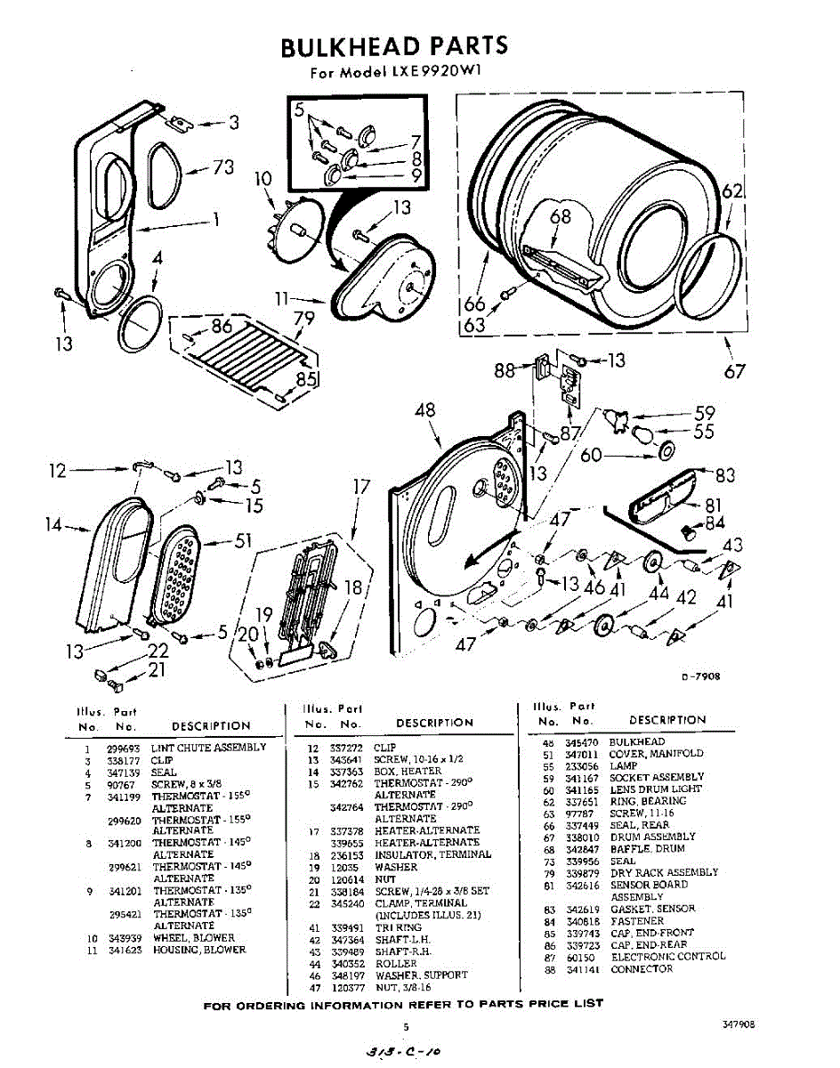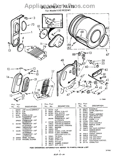 Parts for Whirlpool LXE9920W1: 05 - Bulkhead Parts