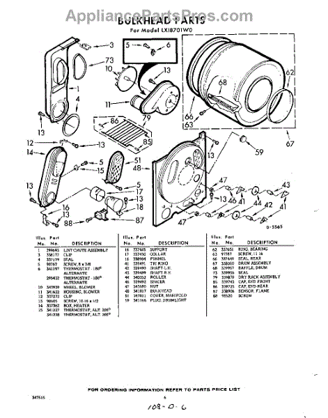 Parts for Whirlpool LXI8701W0: 06 - Bulkhead Parts