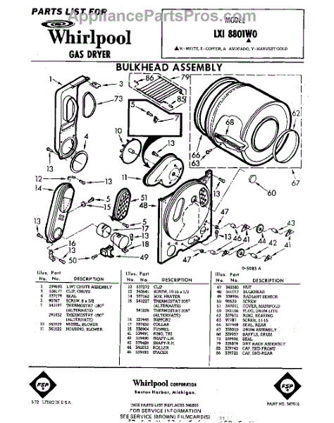 Parts for Whirlpool LXI8801W0: 01 - Bulkhead Parts