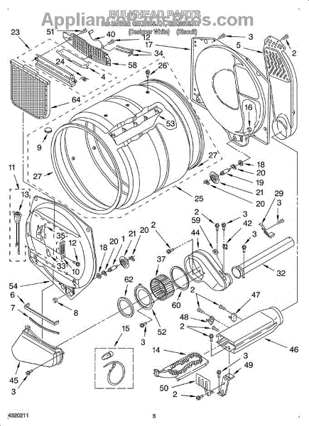 This bulkhead is the front interior panel that supports the drum and helps direct dryer airflow for efficient tumbling and exhaust. It restores proper drum alignment and airflow when the original panel is worn or damaged. What it does:
