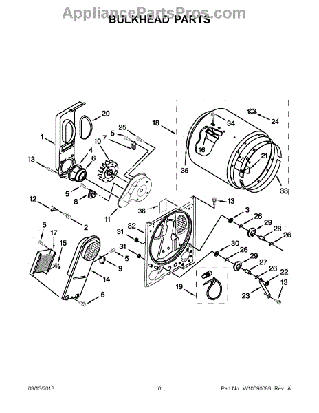 This bulkhead is the front tub housing that supports the washer drum and seals the washer cabinet to help contain water. Replaces a cracked or corroded housing to restore proper drum alignment and help prevent leaks. What it does: