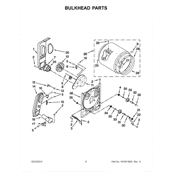 This bulkhead is the front tub housing that supports the washer drum and seals the washer cabinet to help contain water. Replaces a cracked or corroded housing to restore proper drum alignment and help prevent leaks. What it does: