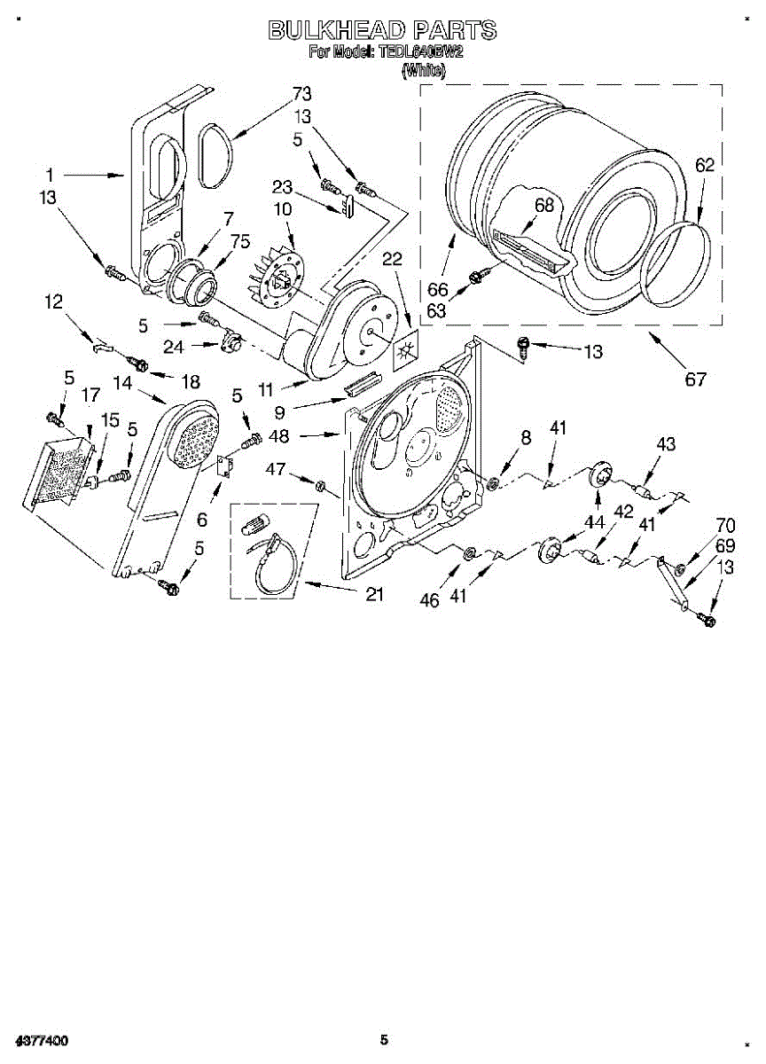 Replacement drum front bulkhead for dryers. Installs at the front of the drum assembly. Needed when original is cracked, damaged, or worn out.