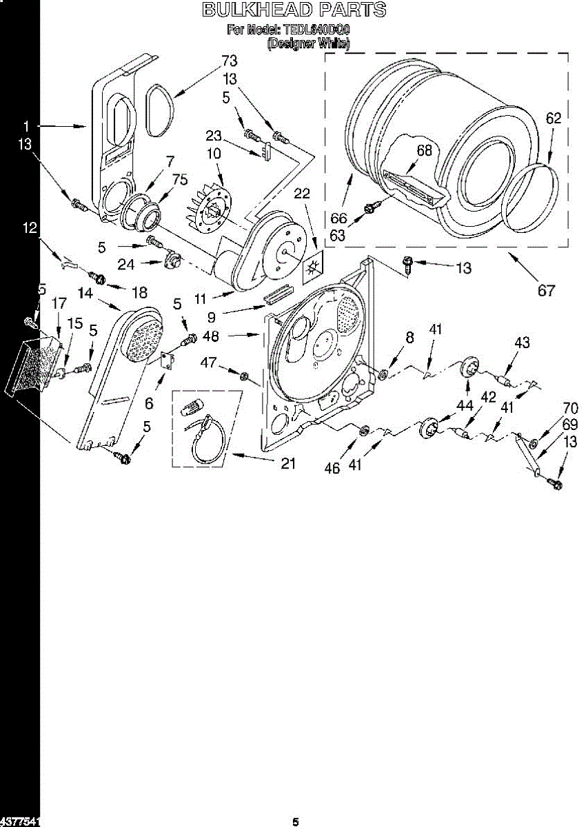 Replacement drum front bulkhead for dryers. Installs at the front of the drum assembly. Needed when original is cracked, damaged, or worn out.