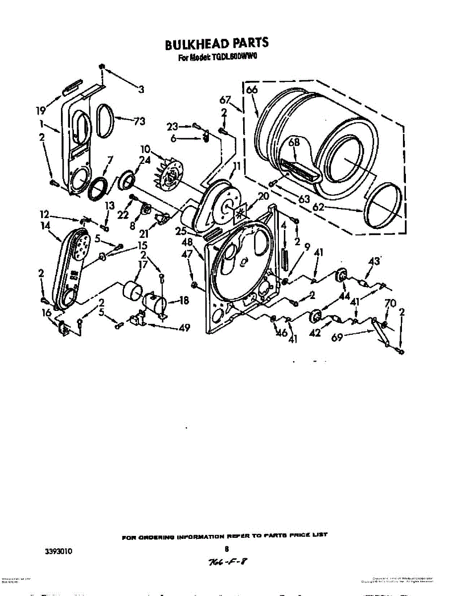 Replacement drum front bulkhead for dryers. Installs at the front of the drum assembly. Needed when original is cracked, damaged, or worn out.