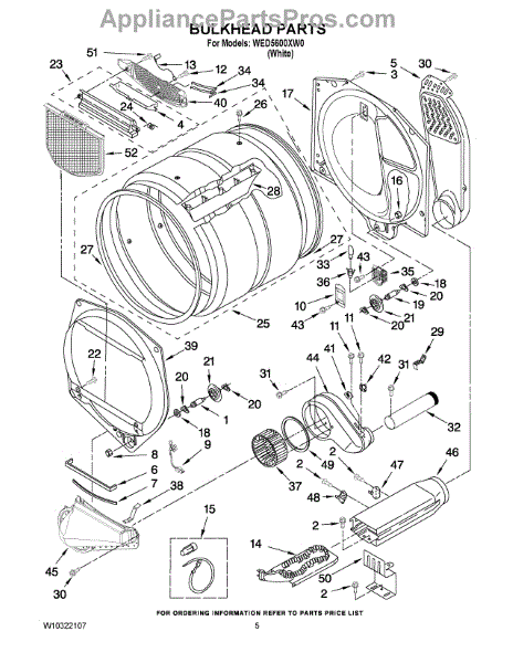 This front drum bulkhead is the stationary front panel that supports the dryer drum and seals the drum opening to maintain proper airflow and drum alignment for reliable drying performance. What it does: