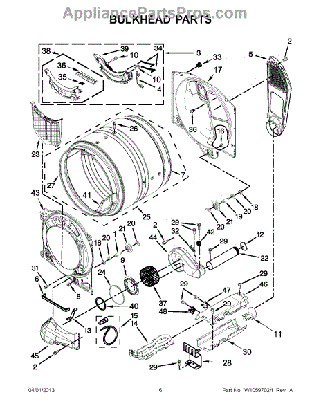 This bulkhead is the front interior panel that supports the drum and helps direct dryer airflow for efficient tumbling and exhaust. It restores proper drum alignment and airflow when the original panel is worn or damaged. What it does: