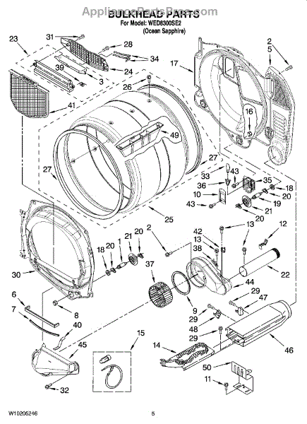 The High Limit Thermostat is an OEM replacement part for Whirlpool dryers. Located on the heater housing, it functions as a critical safety component monitoring drum compartment temperatures. L295-50F. Causes of thermostat failure include normal conductor fatigue from many heating cycles over extended usage. Chemical degradation potentially infiltrates components as well. Symptoms of an ineffective high-limit thermostat include: