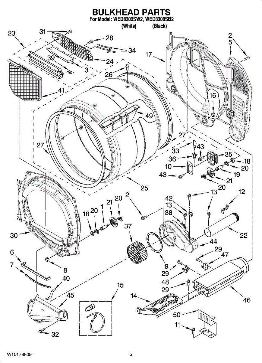 Dryer bulkhead assembly connects the drum to the blower housing. Replace if cracked, warped, or causing air leaks. Verify fit with your model number.