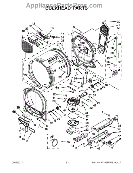 This front axial bulkhead is the front support assembly that centers the dryer drum and provides a mounting surface for the front bearing and seal. It restores proper drum alignment and helps reduce noise and rubbing. What it does: