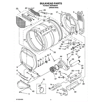 Dryer bulkhead assembly connects the drum to the blower housing. Replace if cracked, warped, or causing air leaks. Verify fit with your model number.
