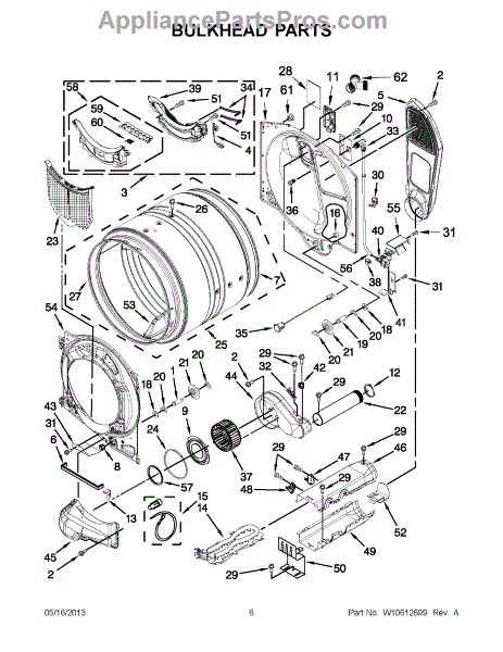 This blower housing assembly replaces the blower chamber that supports the blower wheel and routes air through the dryer for proper tumbling and drying. Restores correct airflow and helps reduce overheating or poor drying performance. What it does: