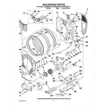 This bulkhead is the front structural panel that supports the dryer drum and seals the front of the cabinet to maintain proper airflow and drum alignment. Replacing a worn bulkhead restores stable drum rotation and prevents air leaks. What it does: