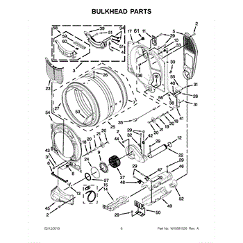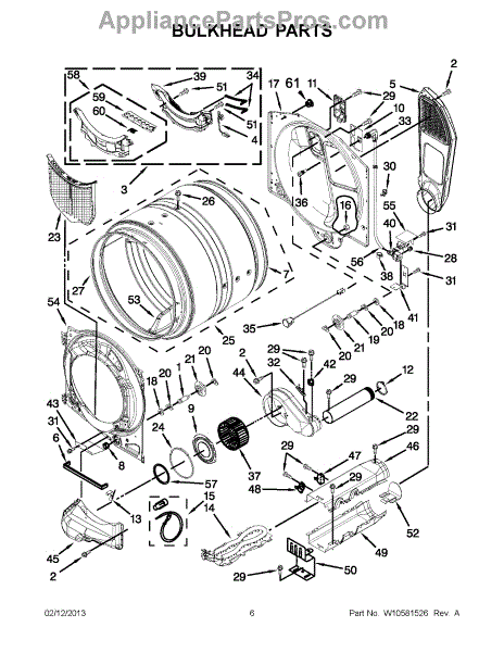 This bulkhead is the front structural panel that supports the dryer drum and seals the front of the cabinet to maintain proper airflow and drum alignment. Replacing a worn bulkhead restores stable drum rotation and prevents air leaks. What it does:
