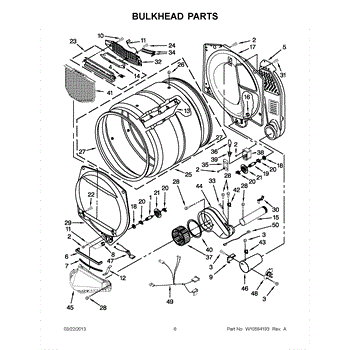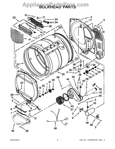 This front drum bulkhead is the stationary front panel that supports the dryer drum and seals the drum opening to maintain proper airflow and drum alignment for reliable drying performance. What it does: