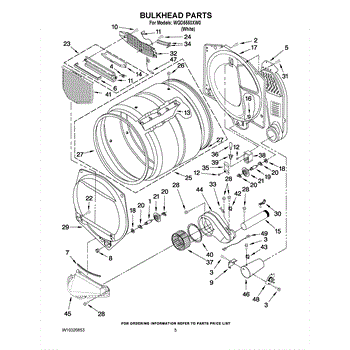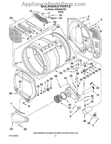 This front drum bulkhead is the stationary front panel that supports the dryer drum and seals the drum opening to maintain proper airflow and drum alignment for reliable drying performance. What it does: