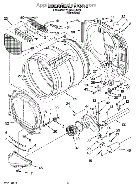 A replacement front drum bulkhead that supports the dryer drum and helps keep the front bearing and seal aligned for smooth rotation. Use this bulkhead to restore proper drum alignment and reduce rubbing, noise, and excessive front play. What it does: