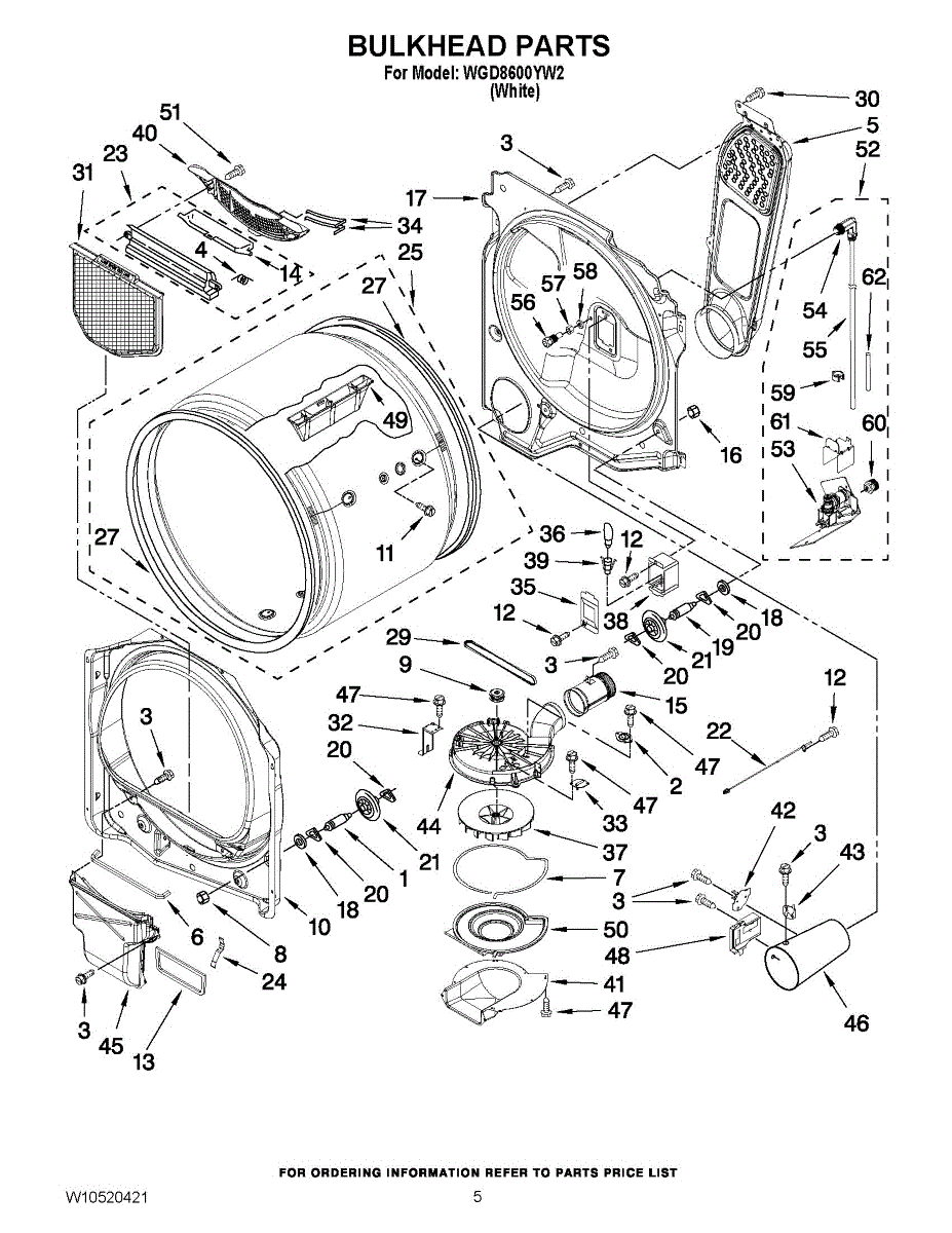 Front bulkhead assembly centers your dryer drum and mounts the bearing and seal. Replace if corroded, warped, or damaged to restore alignment and reduce noise.