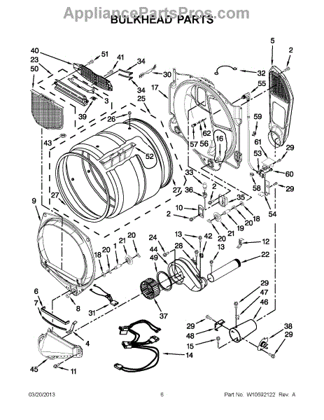 Replacement housing that supports and protects internal components in compatible Whirlpool appliances. Restores structural integrity to the cabinet, helping reduce vibration and keeping wiring and components enclosed for safe, reliable operation. What it does: