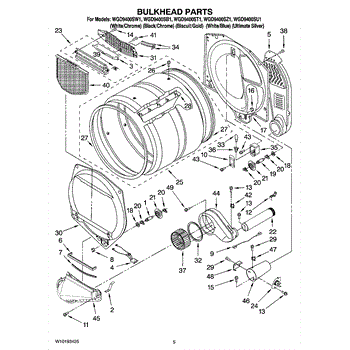 Dryer bulkhead assembly connects the drum to the blower housing. Replace if cracked, warped, or causing air leaks. Verify fit with your model number.
