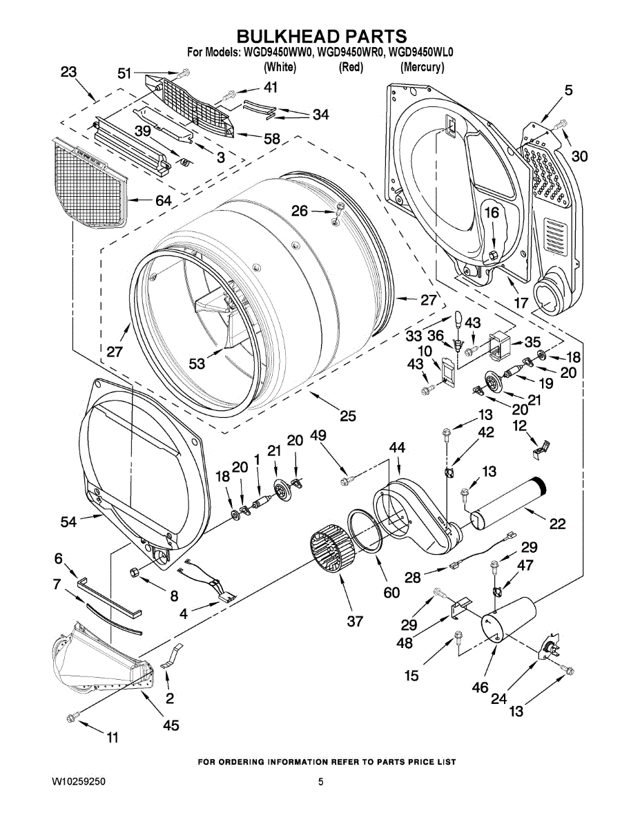 Dryer bulkhead assembly connects the drum to the blower housing. Replace if cracked, warped, or causing air leaks. Verify fit with your model number.