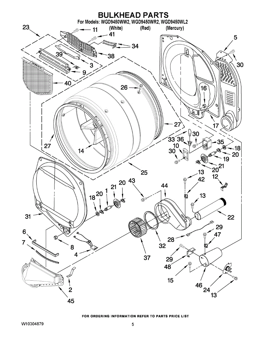 Front bulkhead for dryer drum assembly. Replaces cracked, broken, or worn drum front pieces. Essential structural component for drum rotation.