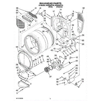 The washer is an OEM replacement part for Whirlpool clothes dryers. This part is located on the drum roller support shaft in your dryer. The exterior of the washer is 1 inch in diameter with a hole in the middle and is made of metal. They are installed alongside the drum support rollers and idler pulleys. They help prevent the rollers and pulleys from bumping up against the brackets they are installed on. If you are replacing the rollers, we suggest you replace the washers at the same time. Causes can be normal wear to bearing surfaces over extended use cycles. Accidental impacts may also potentially bend or damage shaft components. Symptoms of a bad roller shaft include: