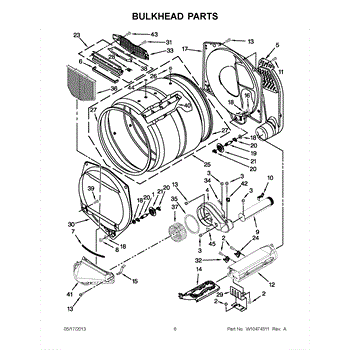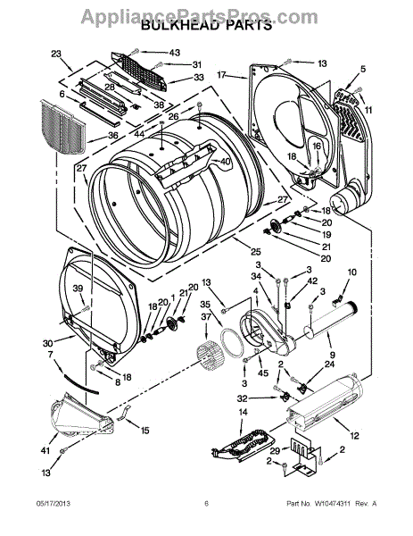 This bulkhead is the front interior panel that supports the drum and helps direct dryer airflow for efficient tumbling and exhaust. It restores proper drum alignment and airflow when the original panel is worn or damaged. What it does:
