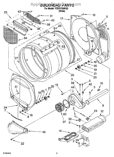 This bulkhead is the front interior panel that supports the drum and helps direct dryer airflow for efficient tumbling and exhaust. It restores proper drum alignment and airflow when the original panel is worn or damaged. What it does: